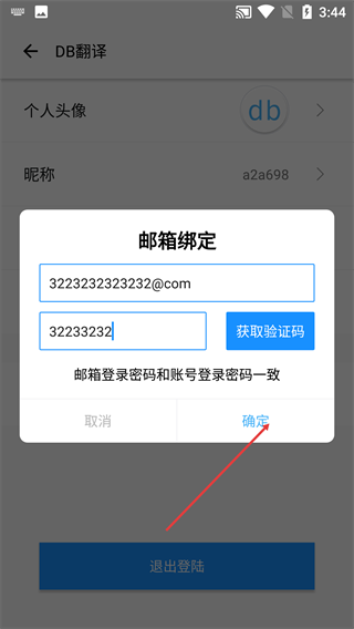 4、填写完信息后,点击【确定】按钮,即可提交邮箱绑定的申请。