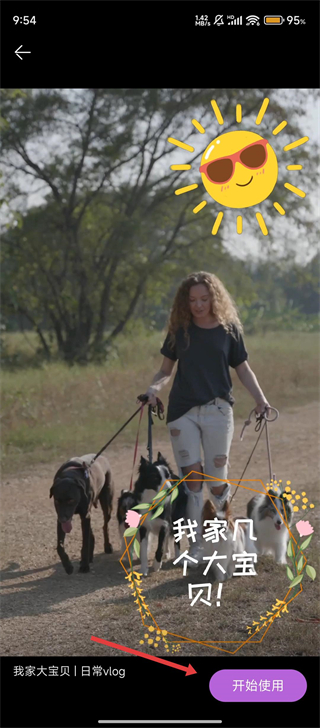 2、选中心仪视频模板后,点击【开始使用】,即可进入视频编辑环节,开启专属宠物视频的制作啦。