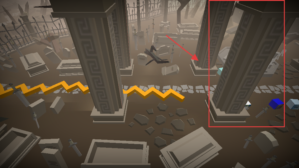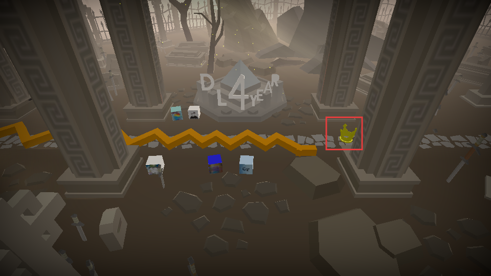 4、沿黄色折线路径移动,收集场景中的物品,向【皇冠-目标】方向推进,完成关卡。