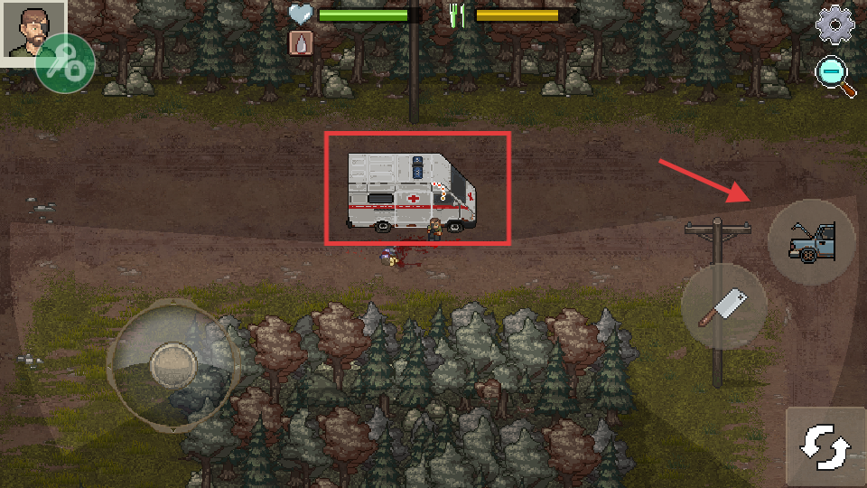 3、探索到【救护车】载具时,点击右侧车辆图标,可驾驶或搜刮物资,载具助力移动或庇护,结合无限耐久灵活利用。