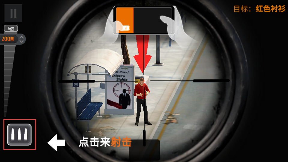 3、确认瞄准后点击射击区域,利用子弹精准击中目标,是完成Sniper3D狙击任务的关键操作。