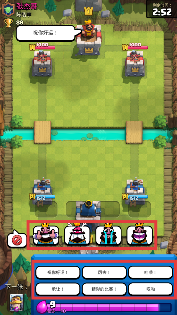 1、对局开始时,可利用底部的表情和快捷话术功能,发送【祝你好运】等互动内容,营造对局氛围。