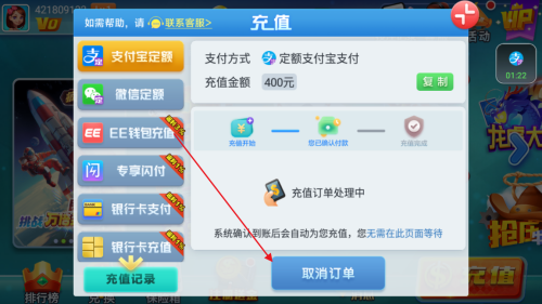 2、接著在彈出的充值記錄中點擊需要取消的訂單;