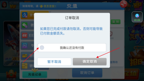 4、最後勾選【我確認還沒有付款】,點擊【確定取消】即可。