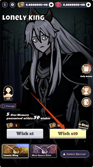 1、在游戏抽卡界面,点击【Wish-x10】按钮,进行十连抽,获取角色或道具,提升游戏进度。
