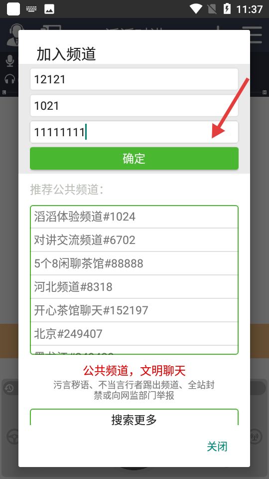 4、信息填写完毕后,点击绿色【确定】按钮,提交加入频道的申请。