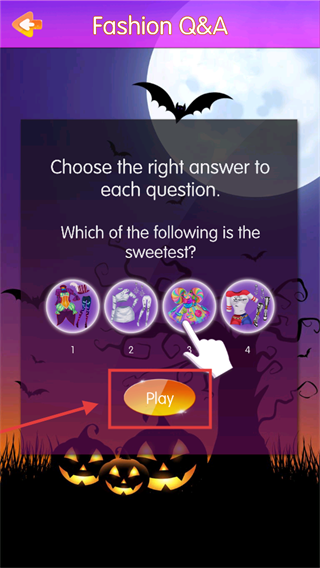 2、在【Fashion-Q&A】答题界面,选对“最甜”的选项后,点击【Play】答题,可提升时尚知识以辅助服装搭配。