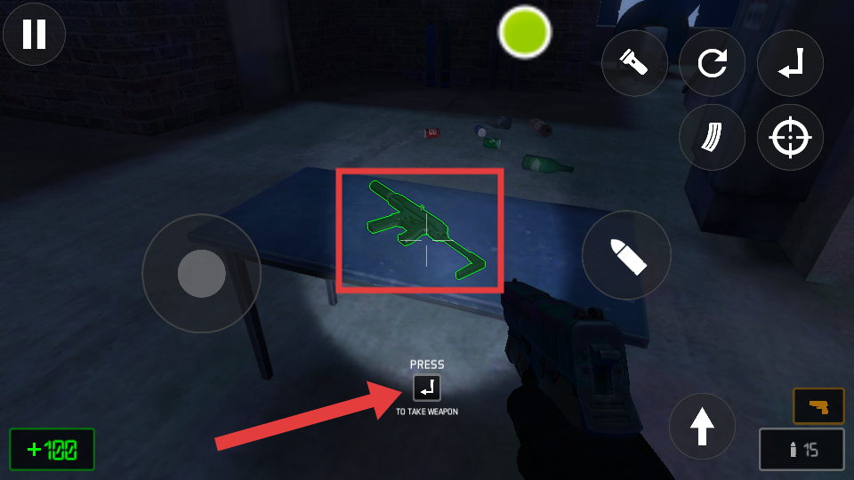 2、到达位置后,看到桌上的武器,按照提示【PRESS-TO-TAKE-WEAPON】操作,获取更强力的武器,增强生存能力。