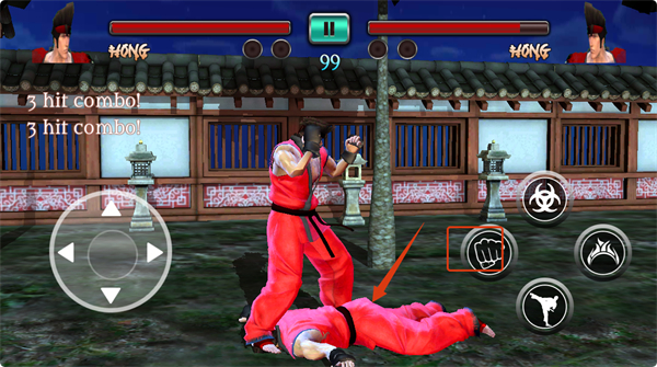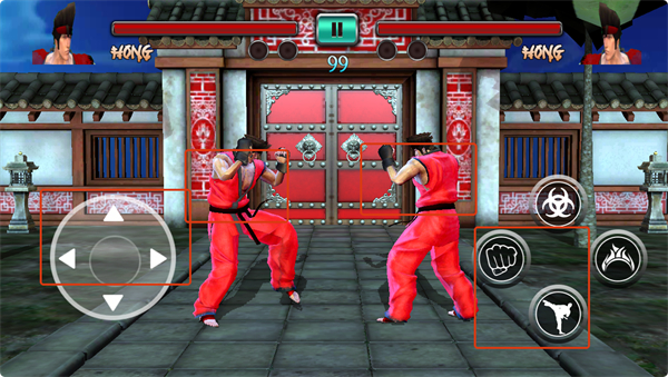2、在格斗界面,利用左侧方向键控制角色移动,右侧拳、脚等技能按钮释放招式,与对手展开对战。