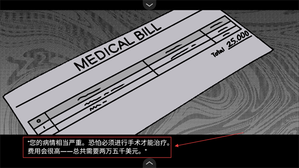 2、查看【MEDICALBILL】得知需赚【25000】美元手术费,明确核心目标与生存压力。