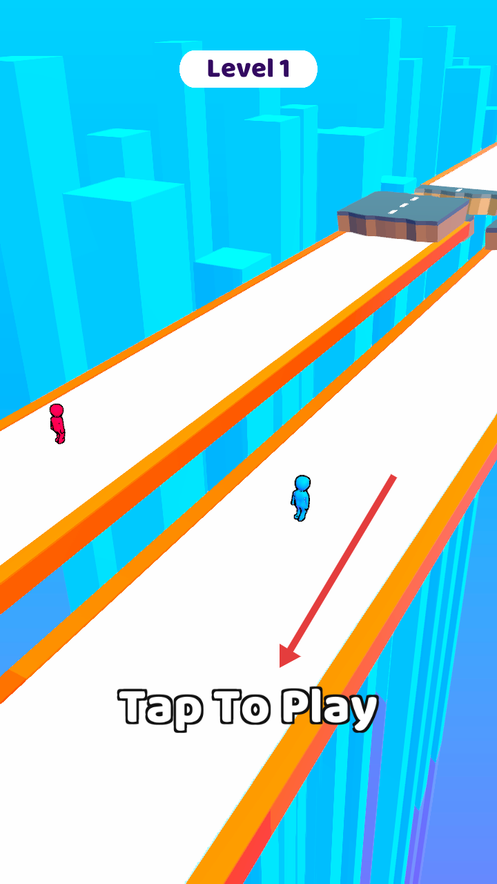 1、点击TapToPlay开始,在城市赛道操控蓝色小人,开启收集同伴与对手竞争的挑战。