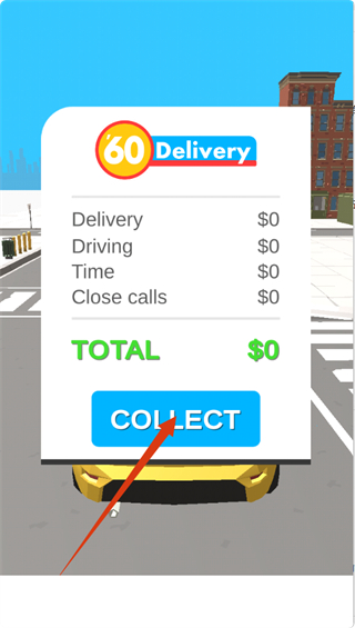 4、配送完成后,点击【Collect】按钮,领取本次配送的报酬,积累资金以升级车辆或解锁新功能。