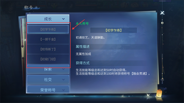 3、在称号分类下,选择想要获得的称号。