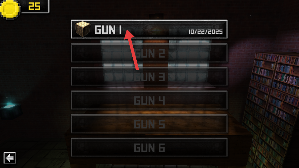 1、选择【GUN1】,使用初始枪械,进行战斗或探索,推进游戏剧情。