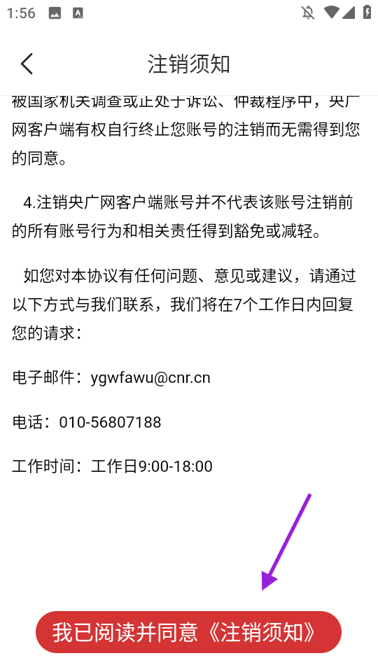 4、点击【我已阅读并同意《注销须知》】,完成账号注销操作。