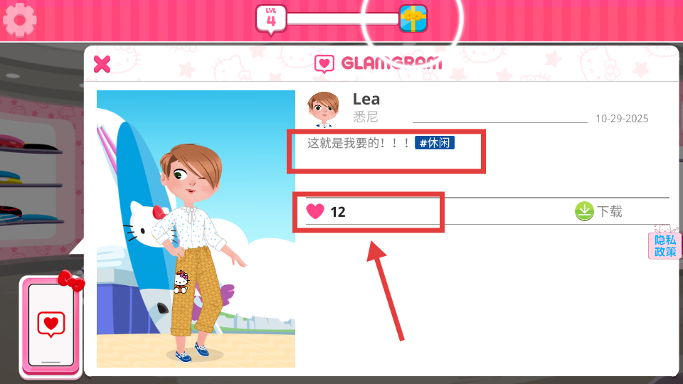 3、按顾客喜好搭配服装,满足需求获【12】爱心,积累爱心解锁新内容,提升经营。