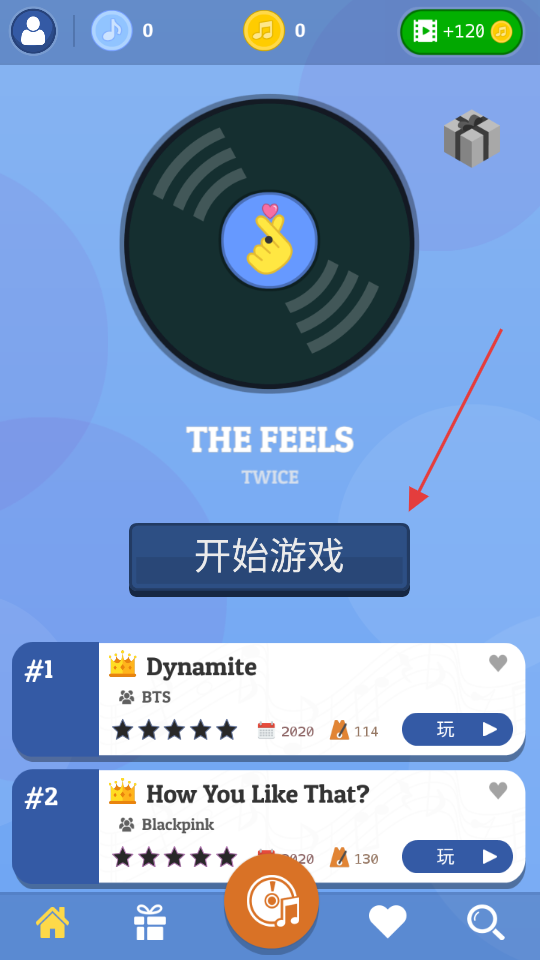 1、在选曲界面,选择想演奏的歌曲,点击“开始游戏”进入演奏环节。