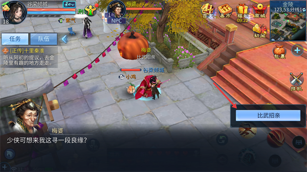 1、在金陵地图中找到梅婆的位置,前往其所在区域。