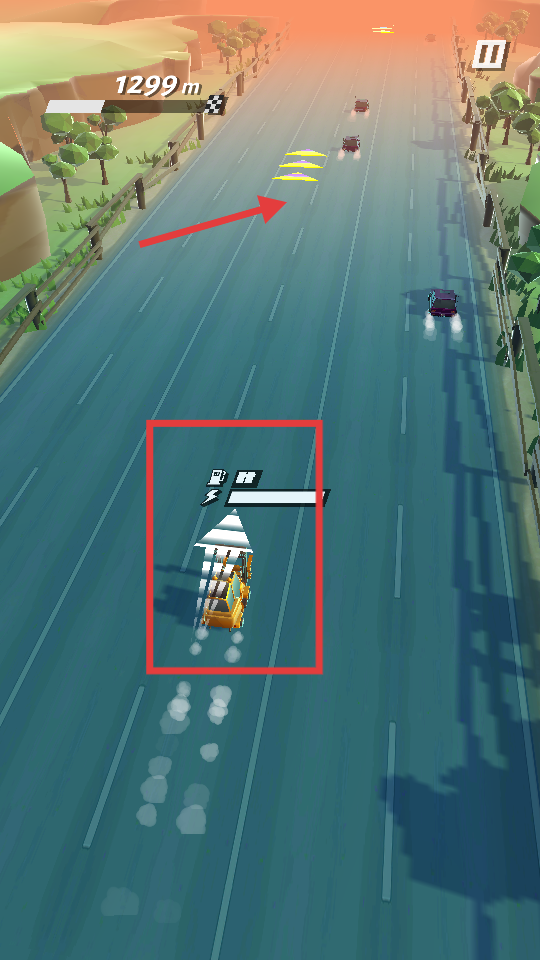 2、操控车辆在道路行驶时,尽量前往前方的黄色加速带提高速度。
