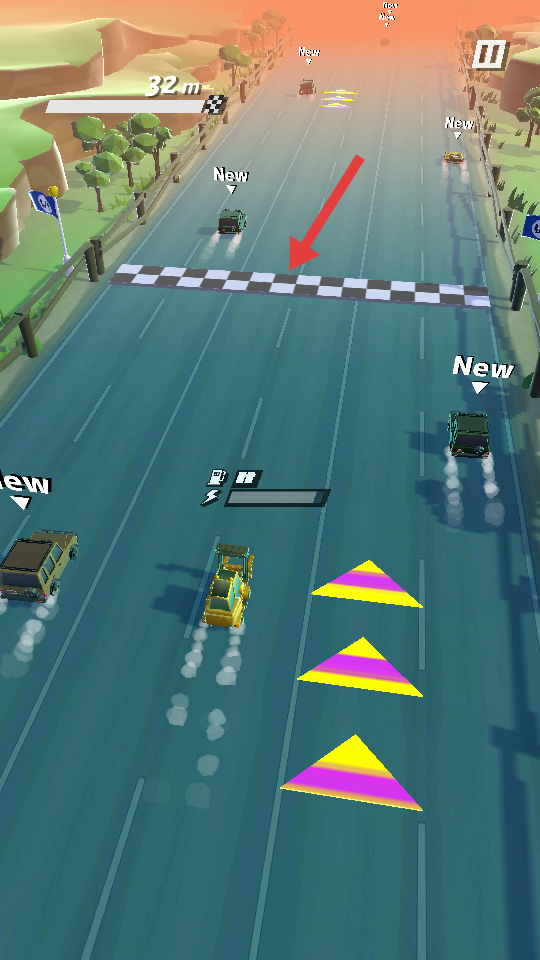3、朝着带有黑白格子的终点线前进,合理规划行驶路线。