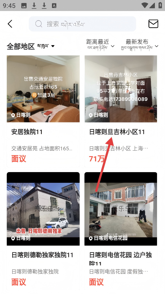 2、在二手房列表中,点击【日喀则旦吉林小区11】的房源,查看该房源详情。