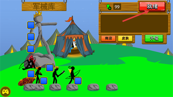 1、在【军械库】界面完成部队配置后,点击【就绪】按钮,即可进入战斗准备阶段。