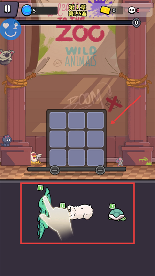 1、进入游戏,拖动下方动物,将其填充至中间3×3格子内。