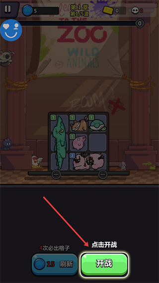 2、完成布局后,点击底部【开战】按钮,进入战斗环节。