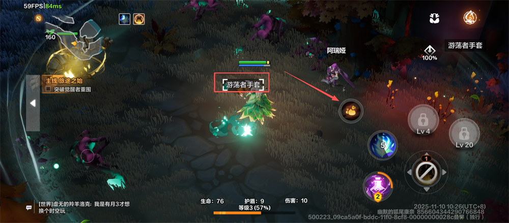 1、在【主线-旅途之始】时,获取战利品【游荡者手套】并装备,提升战斗效率。