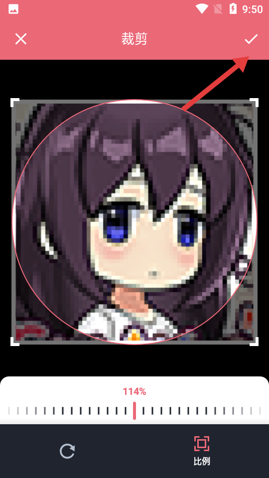 4、调整头像区域后,点击右上角确认按钮,完成头像设置操作。