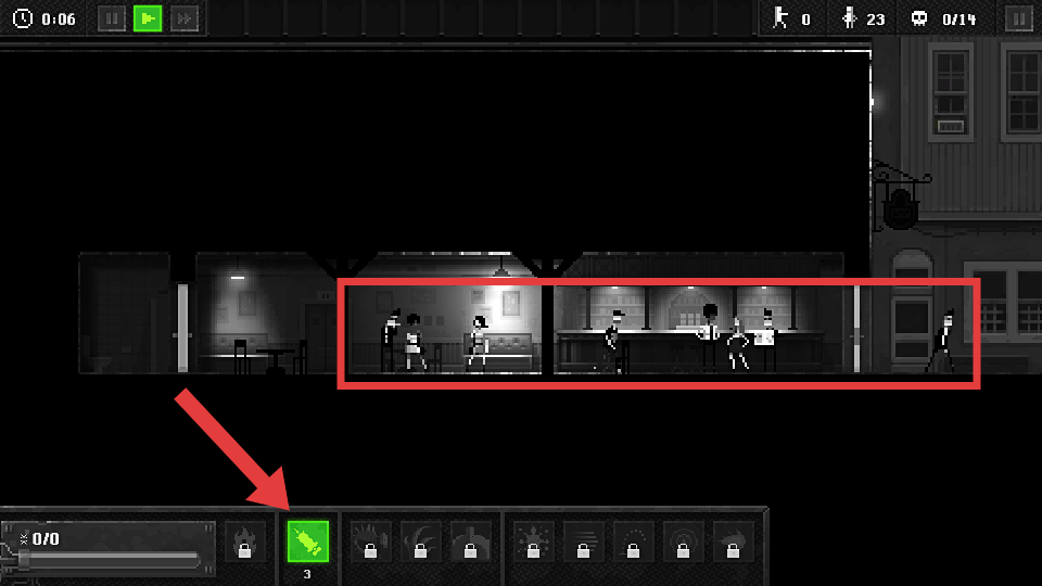 2、进入场景后,点击选取下方【病毒】后,再点击方框内【人类】进行感染。