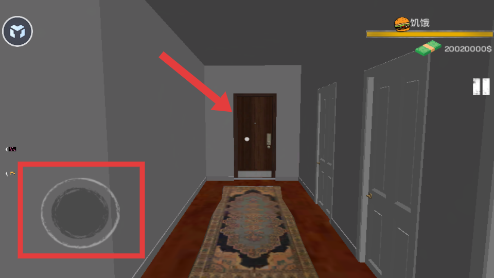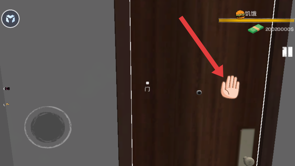 3、遇到门时点击手掌图标开门,出门去探索外界,寻找经营网吧的资源或机会。
