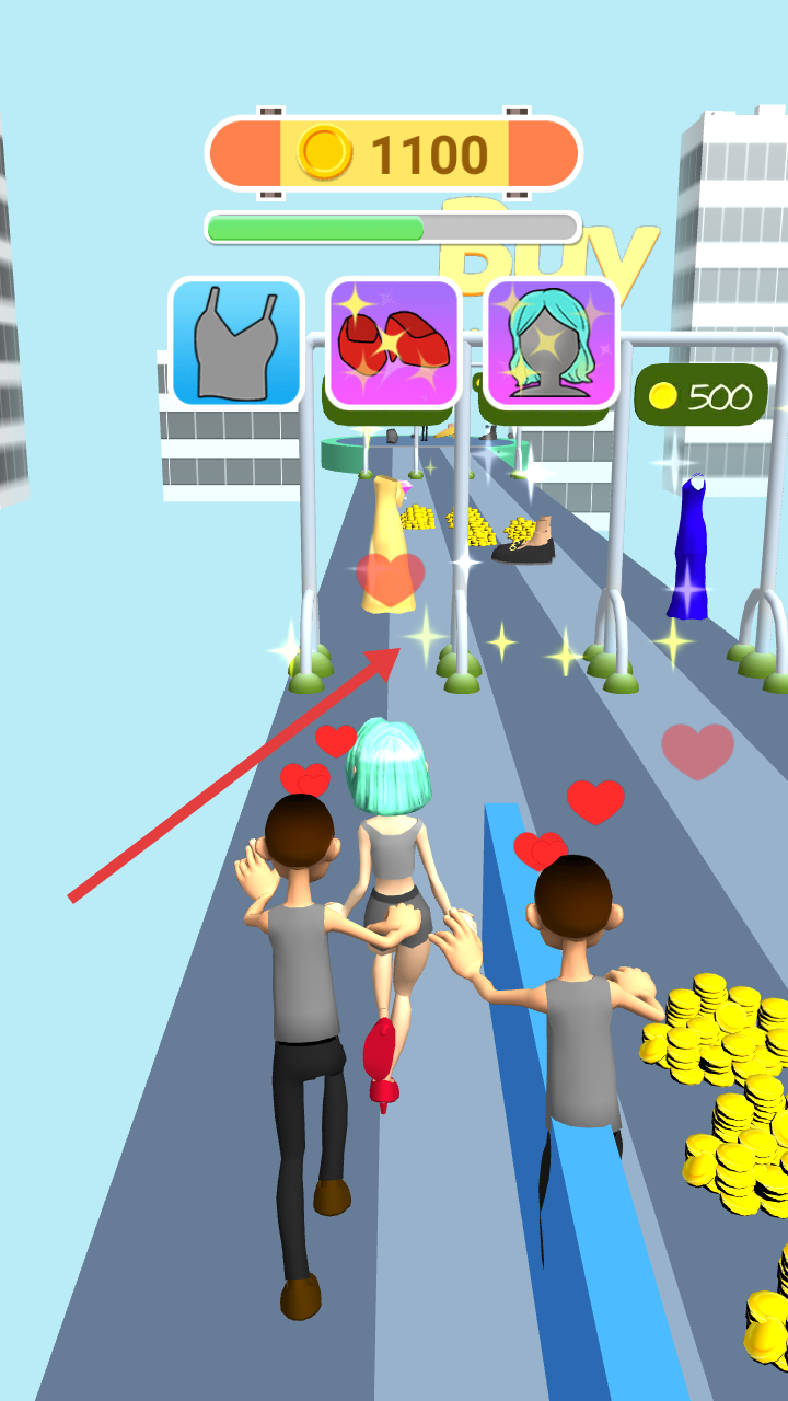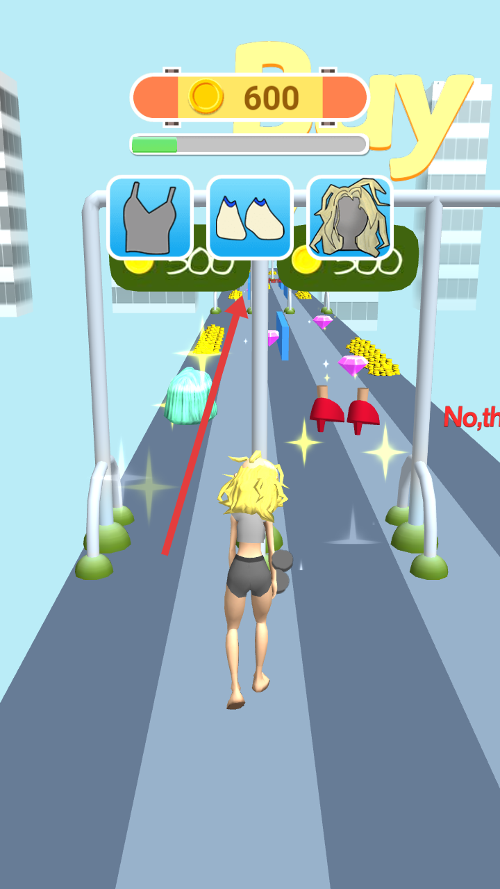 爱购物冲刺是一款融合购物乐趣与跑酷挑战的益智休闲游戏,以边跑边购为核心玩法,玩家操控初始角色在赛道疾驰,需灵活躲避障碍,同时精准收集散落的服装、发饰与鞋履,收集的单品可实时搭配或存入仓库,完成关卡任务还能解锁更多潮流服饰。
