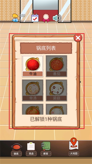 3、解锁不同类型的锅底(如牛油、番茄、骨汤、菌菇等),为顾客提供多种口味选择,提升顾客的就餐体验和满意度。