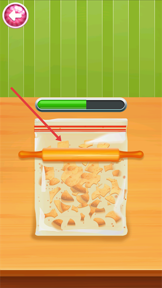1、操作擀面杖按压食材袋,完成基础食材的预处理步骤。