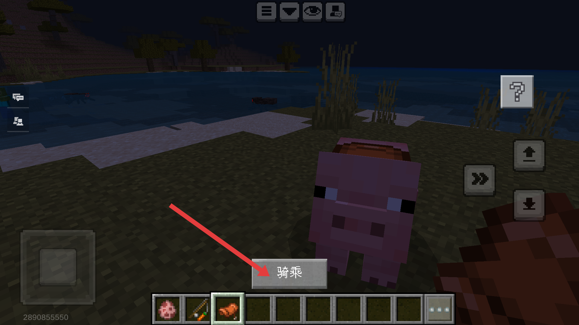 2、装备鞍后,点击【骑乘】即可坐上猪,开启骑猪的探索之旅哦。