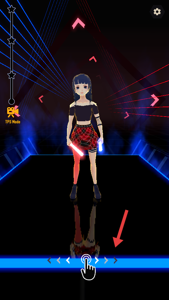 1、点击屏幕启动游戏,角色持光剑进入节奏关卡,准备跟随音符节奏操作。