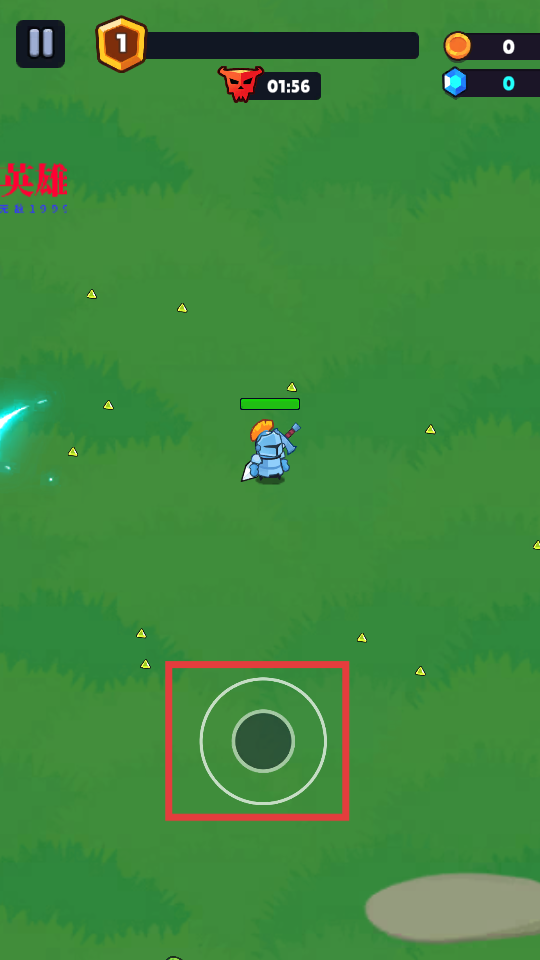 1、在战斗中,通过点击地面的圆圈区域控制角色移动,躲避敌人攻击并靠近敌人进行战斗。