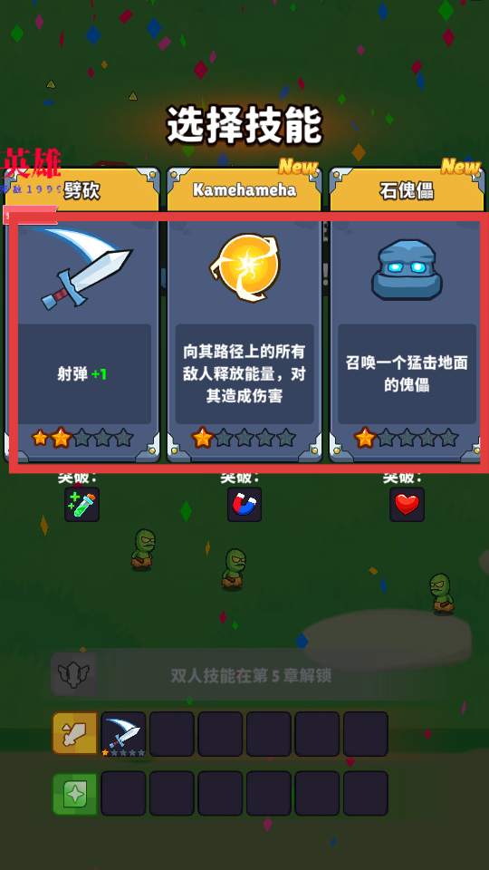 2、角色等级提升时会出现技能选择界面,可选择不同技能,提升角色的战斗能力。
