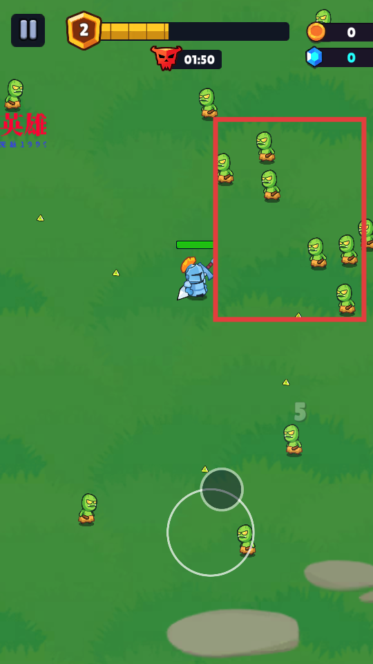 3、在场景中与绿色兽人等敌人战斗,角色会自动攻击范围内的敌人,注意保持移动,避免被敌人包围。