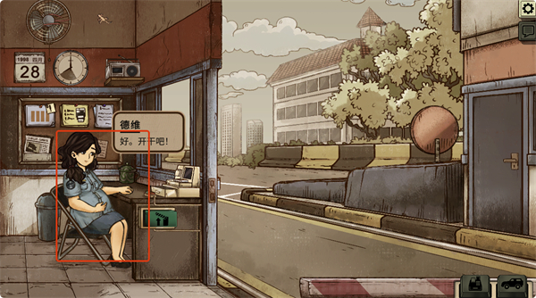 4、在收费岗亭界面,操控角色【德维】开始工作,处理过往车辆的收费事宜,推进游戏进程。