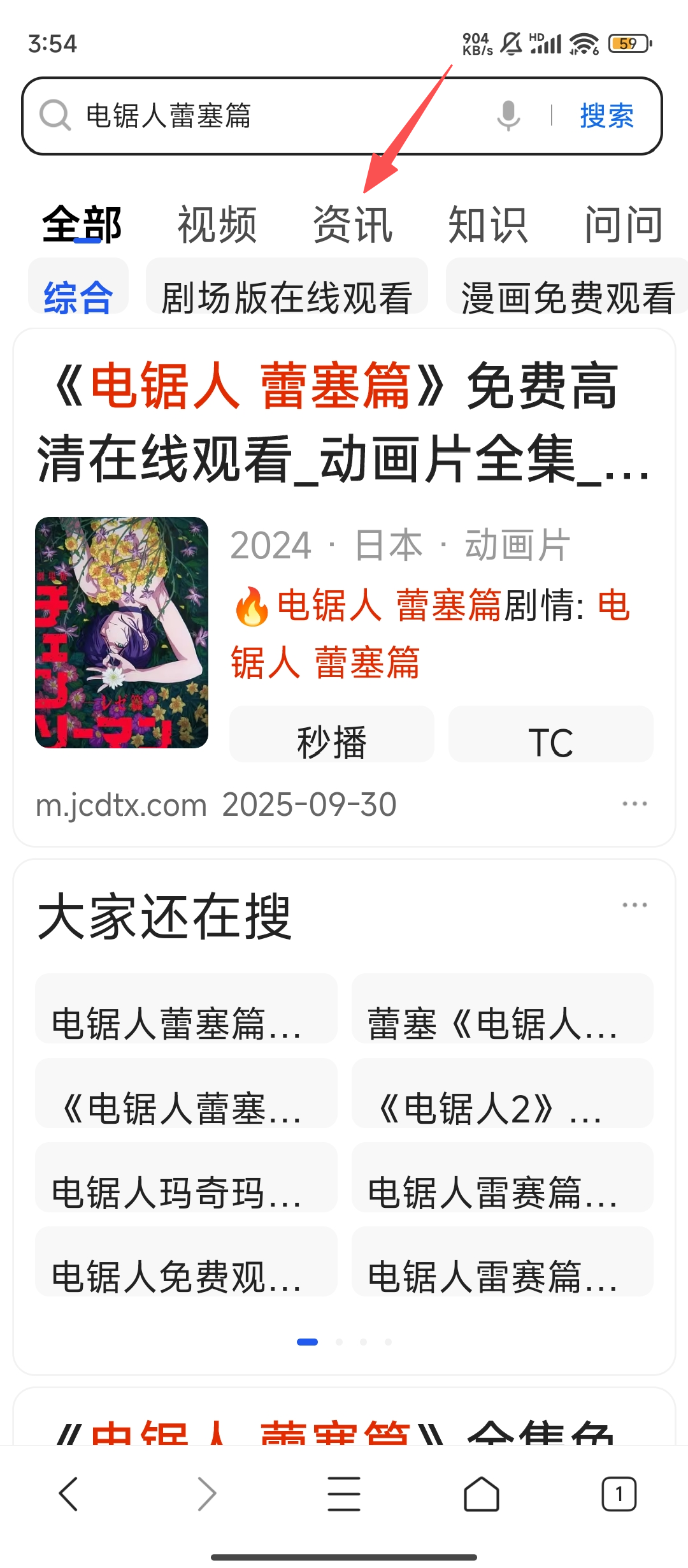 3、搜索结果展示后,在页面上方的分类标签里,找到并点击【资讯】标签,便能筛选出资讯类内容啦。