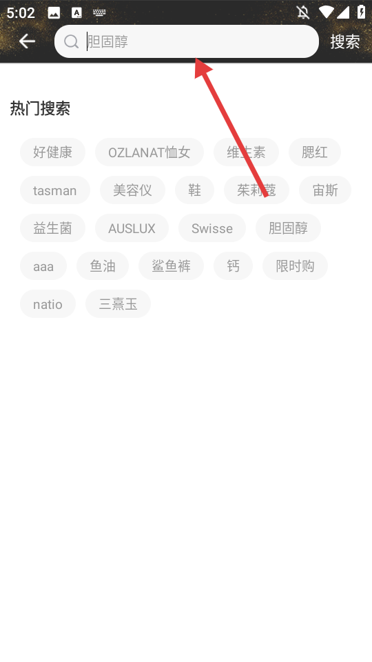 2、进入搜索页面,输入商品名称,点击【搜索】。