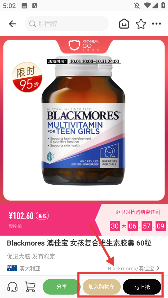 4、可点击【加入购物车】或【马上抢】,完成商品选购操作。