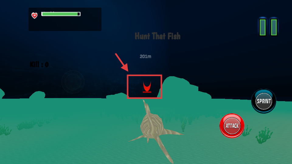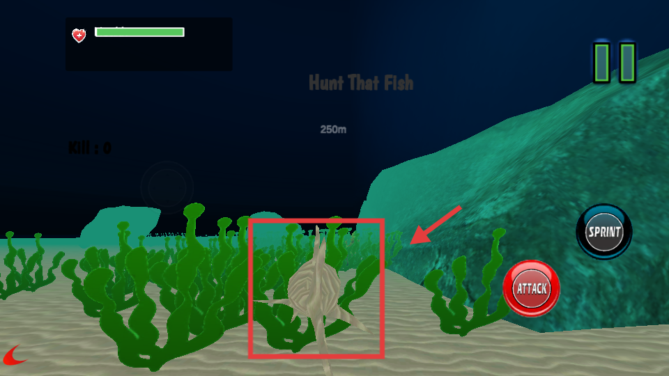 2、进入场景后,操控鲨鱼在海底游动,可在海草区域探索,寻找目标。