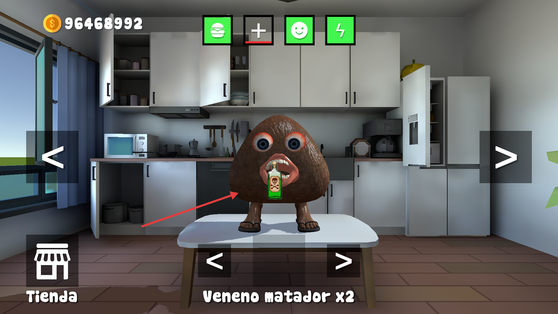 1、在厨房场景中,点击“Tienda(商店)”按钮,可查看已经购买到的饮料。