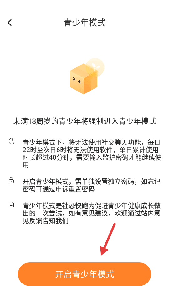 2、点击【青少年模式】,进入青少年模式介绍页面。
