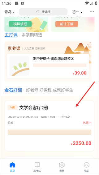 2、在“金石好课”板块选择目标课程,点击课程进入详情页面。