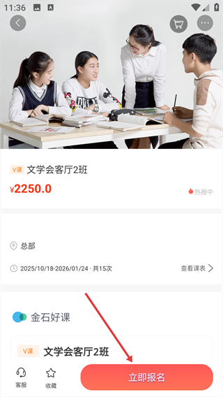 4、确认剩余课程的时间安排后,点击“立即报名”按钮,即可完成报名。
