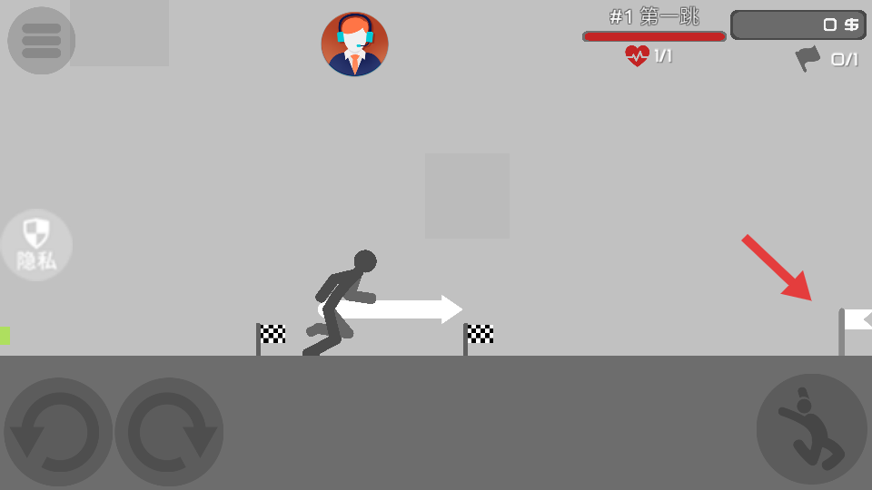 4、成功越过障碍后,继续操控火柴人朝着终点旗帜前进,完成该关卡挑战。